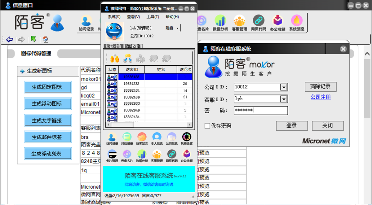 陌客mokor“訪客端”適應(yīng)于微信商城、小程序商城、H5商城、PC商城、APP商城,集成在商城里,訪客無(wú)需安裝任何軟件即可使用。 “客服端”支持所有的windows版本安裝。